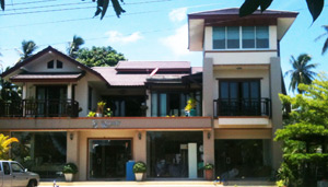 On the main road Thong Sala –Baan Tai, close to the entry to Wat Khao Tham temple, on the left side if come from Thong Sala!