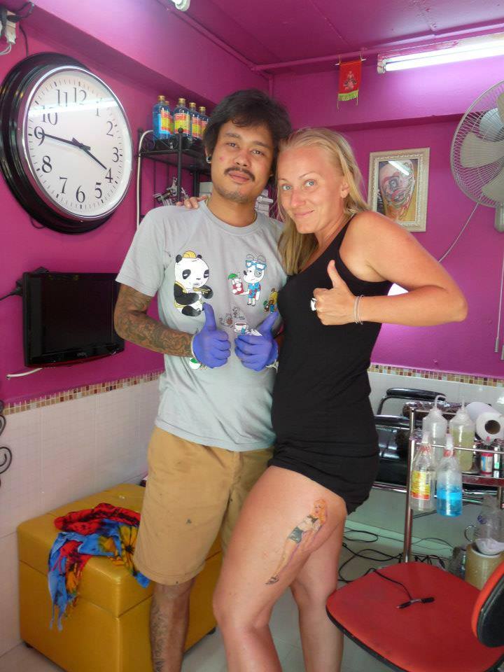 There are tons for tattoo artists on the island, but there were no one that could make 3 of my favourite pin-ups to one by drawing free hand.